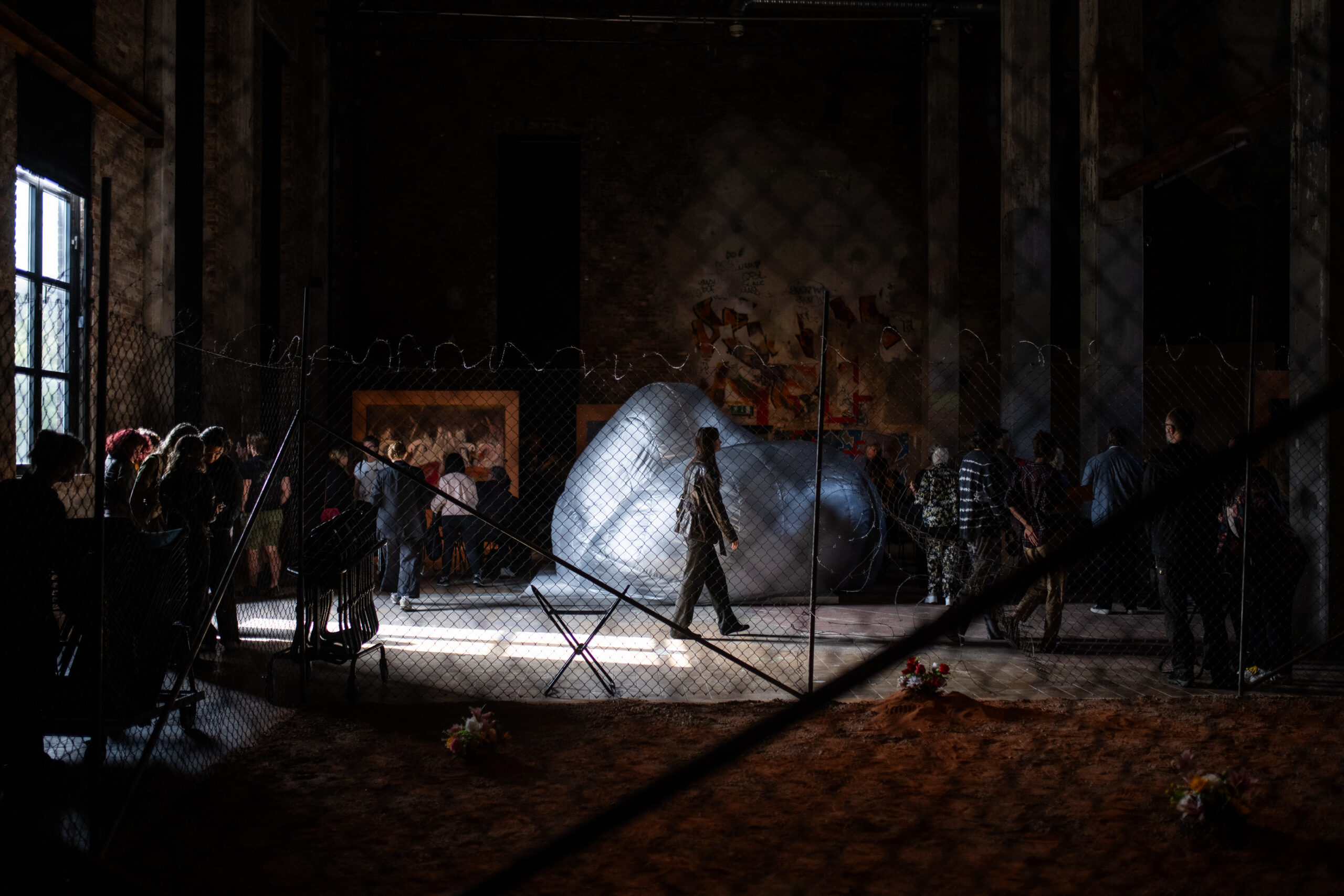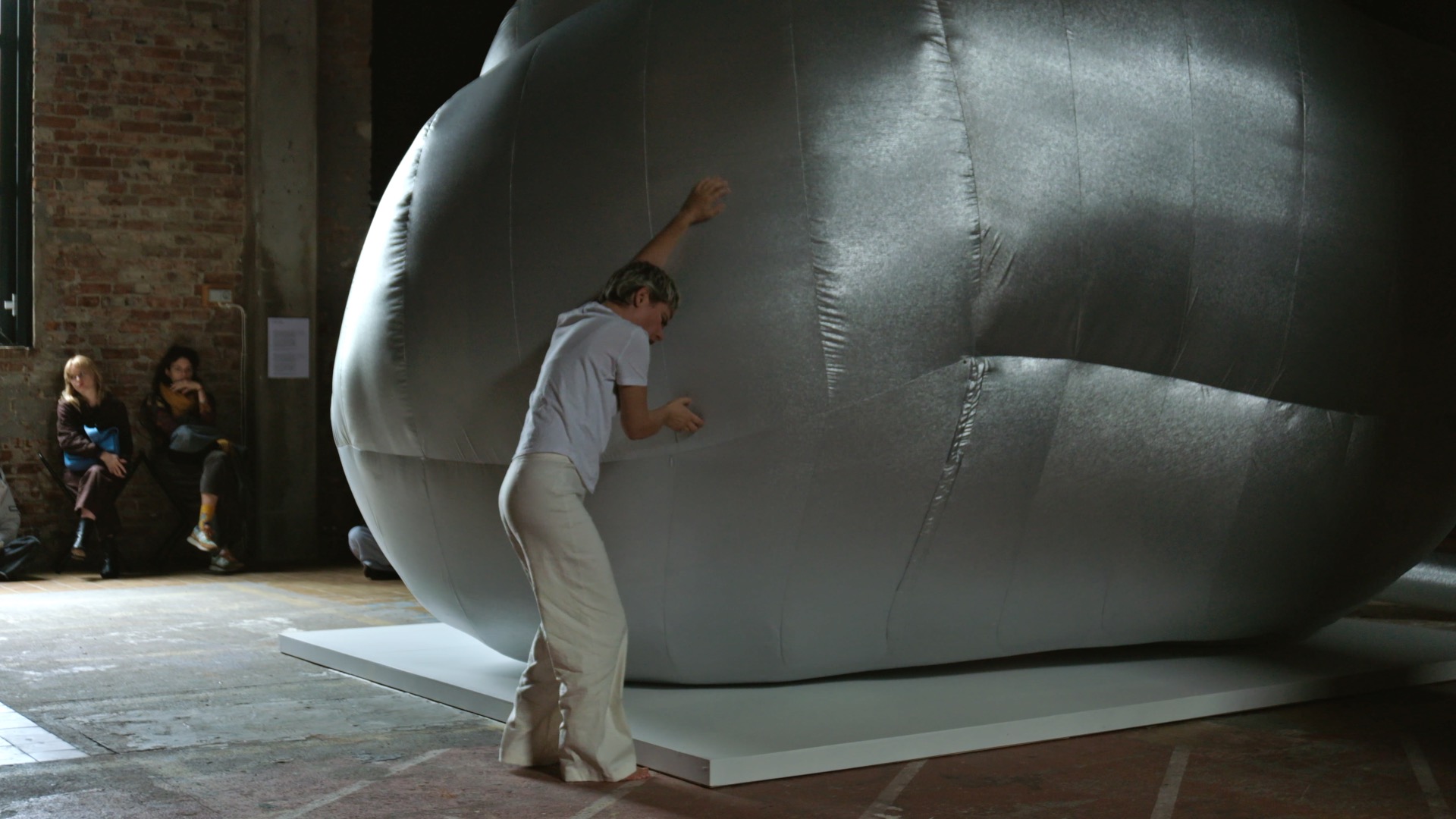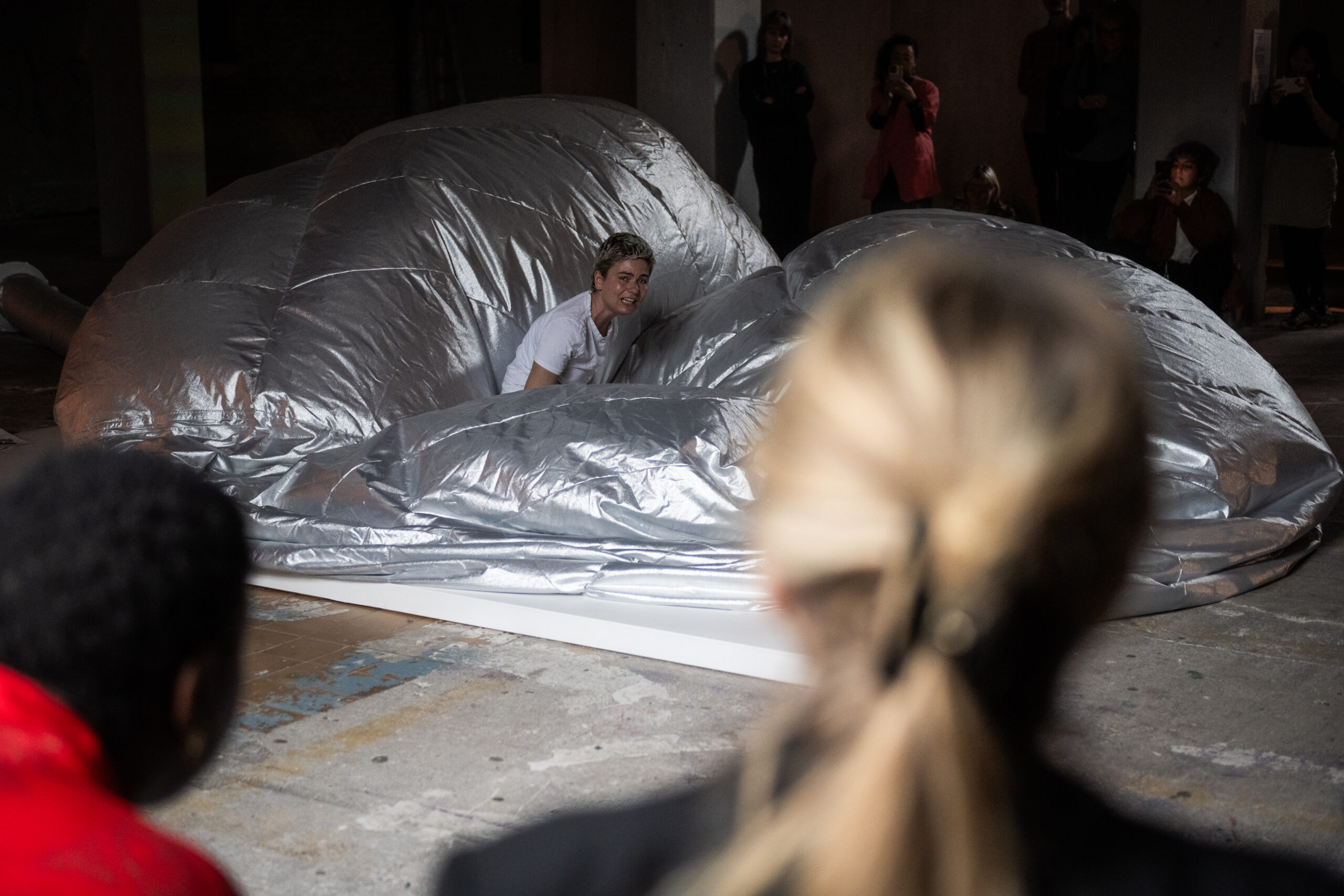Georgia Sagri, Gone Gone, Beyond, 2025, sculpture and performance, 20 September 2025, GIBCA #13, Röda Sten Kunsthalle, Gothenburg. Photo by: Ellika Henrikson ©Georgia Sagri