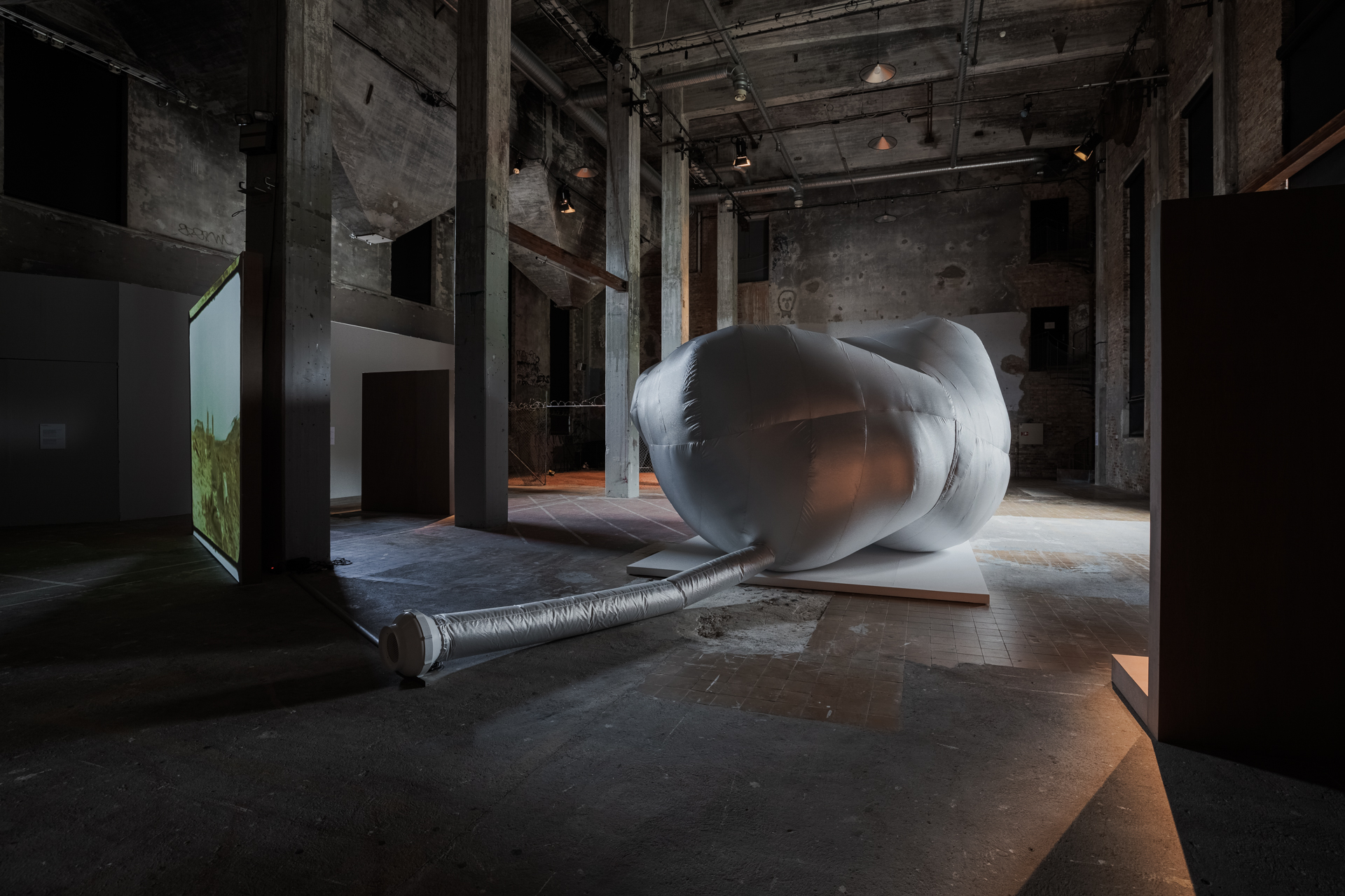 Georgia Sagri, Gone Gone, Beyond, 2025, Fabric, polyester, permanent blower, guy ropes, bag, 4.9m x 2.7m x 2.7m GIBCA #13, Röda Sten Kunsthalle, Gothenburg. Photo by: Ellika Henrikson ©Georgia Sagri